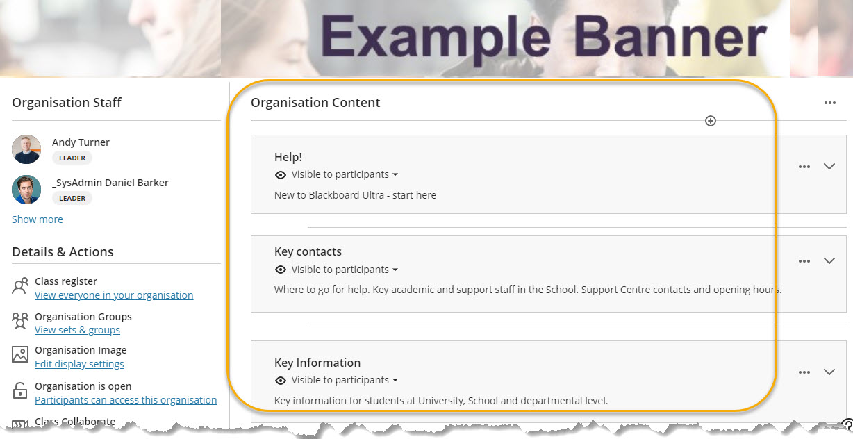 For Ultra Organisations suggested Learning Modules have been added to the template. Inside they contain prompts for suggested use and a possible starting place for creating materials such as staff contact details.