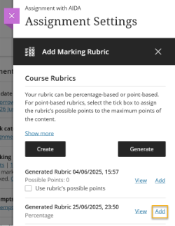 - Read the generated descriptors carefully to ensure they are relevant to your assessment and programme criteria; you are advised to always check and edit generated rubrics before adding to the course.
