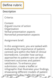 - Use the description box to add your assignment outline for a more specific rubric; you can use up to 2000 characters (it may be useful to copy sections of an assignment brief, module description or programme specification).