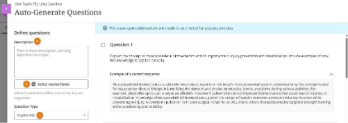 - Select course content items and use detailed descriptions to generate focused questions that explore concepts at a deeper level.