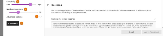 - Click “Add to Assessment” to add any ticked questions to your test. Or, cancel the generation process by clicking the “Cancel” button