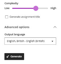 - When clicking ‘Generate’, it is not possible to retrieve previously generated outputs. If you want to retain a copy, either add it to your course or copy and paste the text into a document.