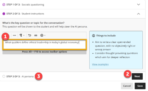 Creating an effective AI Conversation (Role play or Socratic questioning) requires careful thought beforehand. We recommend you follow these tips: