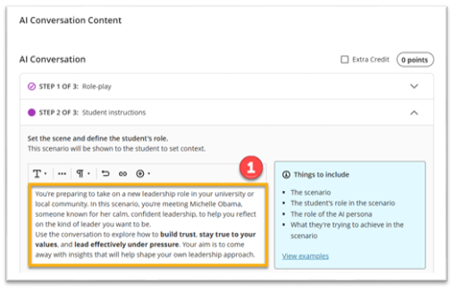 - You can preview the AI Conversation as a student and interact with the AI persona by selecting Preview chat.