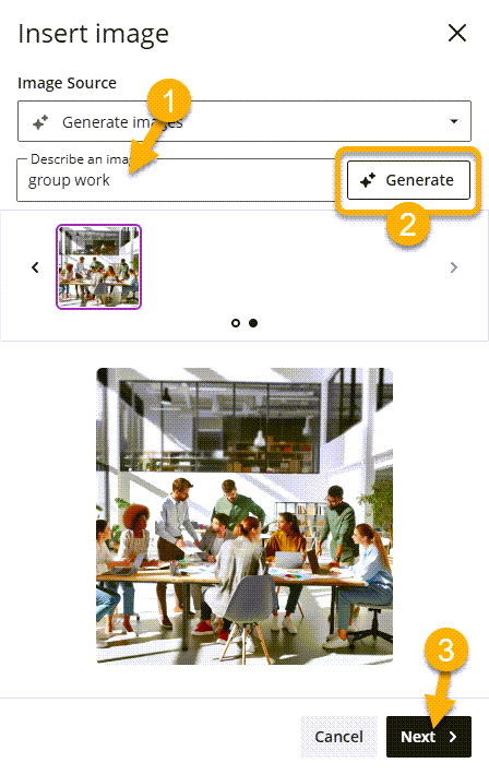 If you do not give a descriptive prompt, the tool will generate an image based on the title of the course content you are creating the image for.