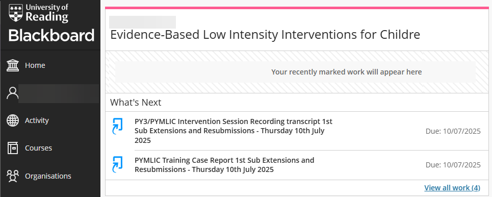 Students can use this area to access Marks and Feedback for all of their modules much in the same way.