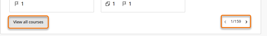 The courses activity area will show a selection of your courses that have had recent activity – click on the View all courses button to jump directly into the courses area where you can filter and search your course list. Alternatively use the forward arrows to flick through the pages of courses.