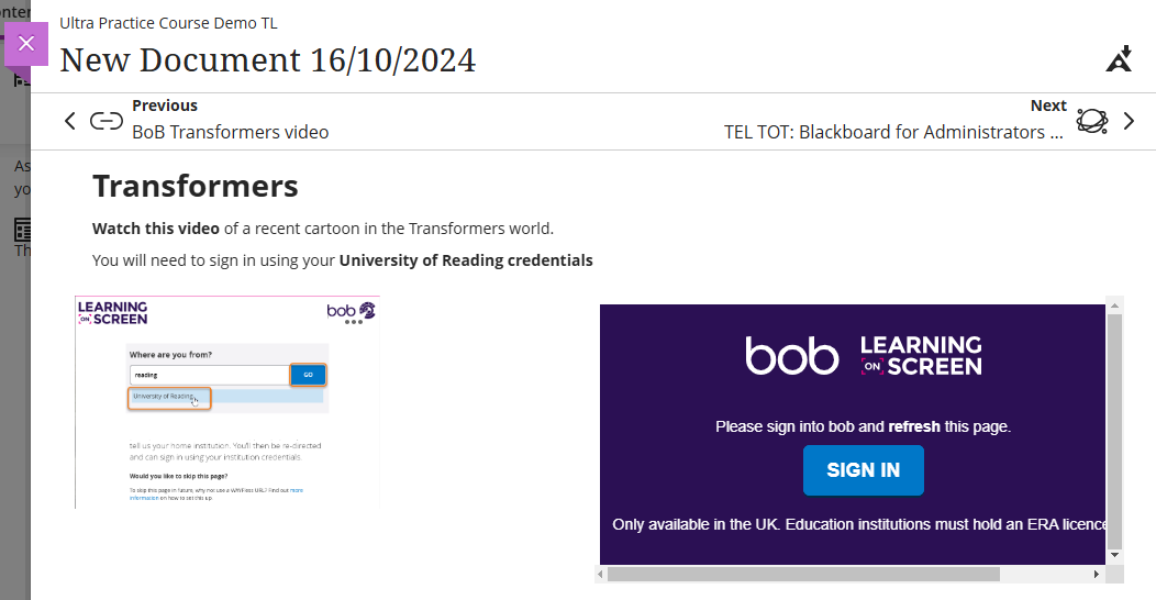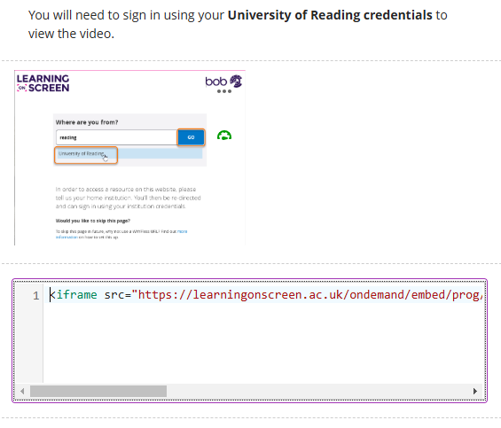 The vide will appear to students with the Box of Broadcasts sign in page showing. Students can sign in with their University of Reading credentials.