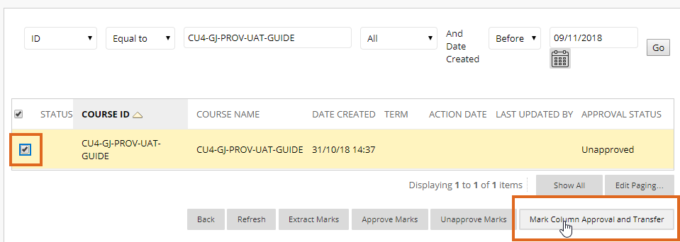 Home / Original Category Archive / Mark Approval and Transfer – approving marks for transfer to RISIS / Select Mark Column Approval and Transfer Select Mark Column Approval and Transfer Leave a Comment / By andyturner / December 12, 2018 Select the Mark Column Approval and Transfer button