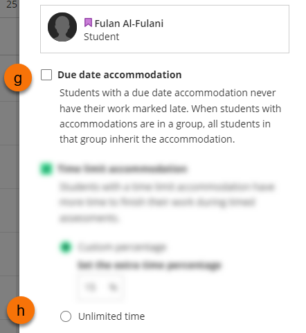 - (g) Due date accommodation – this will prevent students from ever having work marked as late – late submissions are not marked as such.