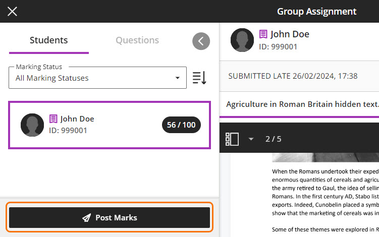 - If a student submits late their marks will not be visible to student until they are posted.