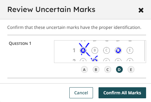 Once you have confirmed all the papers, you may need to also confirm some of the automatic marking. This is indicated by Uncertain Marks tag.