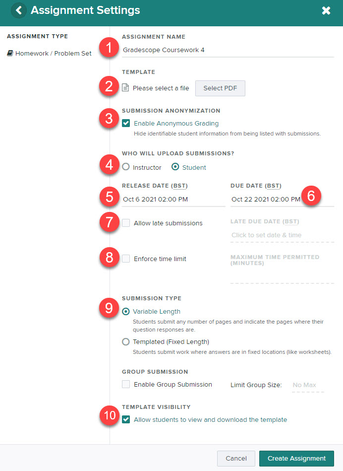 When done, press Create Assignment.