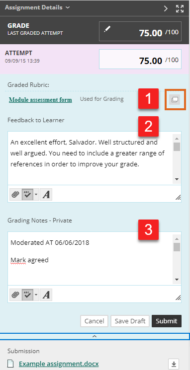 Home / Original Category Archive / Blackboard guidance for External Examiners / Blackboard Assignment feedback panel Blackboard Assignment feedback panel Leave a Comment / By andyturner / May 1, 2019