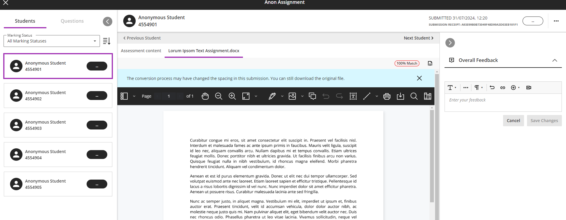 Home / Assessment & Feedback / Blackboard Assignment / Marking a Blackboard Assignment / Anon-marking Anon-markingBy Peter Moll / July 31, 2024