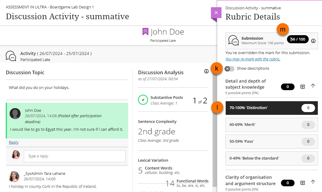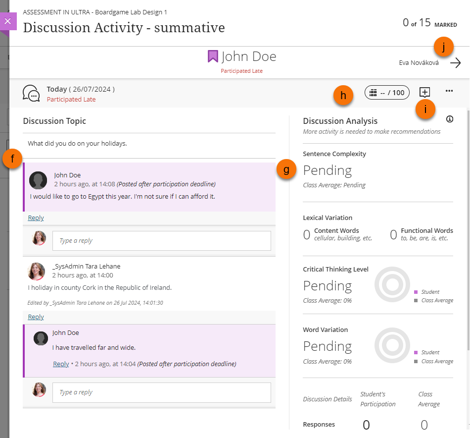 In the marking page you will see the Discussion and marking options.