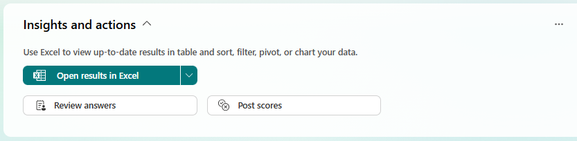 To see the responses data in an Excel spreadsheet for sharing or further analysis, click the Insights and actions pane to open it: