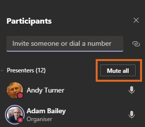 Home / Original Category Archive / Microsoft Teams: managing attendees / Teams – mute all Teams – mute all Leave a Comment / By andyturner / October 1, 2020