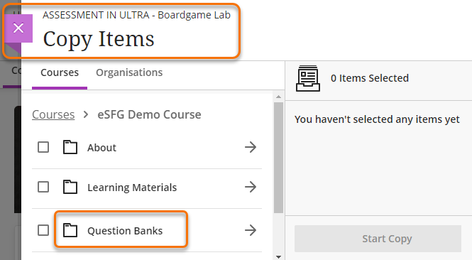 To move question banks from a Blackboard original course or from another Ultra course you can use the Copy function in your Ultra course.