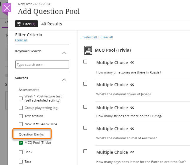 For further guidance please see our guide on Using Question Banks and Pools on how they can be used in your Tests.