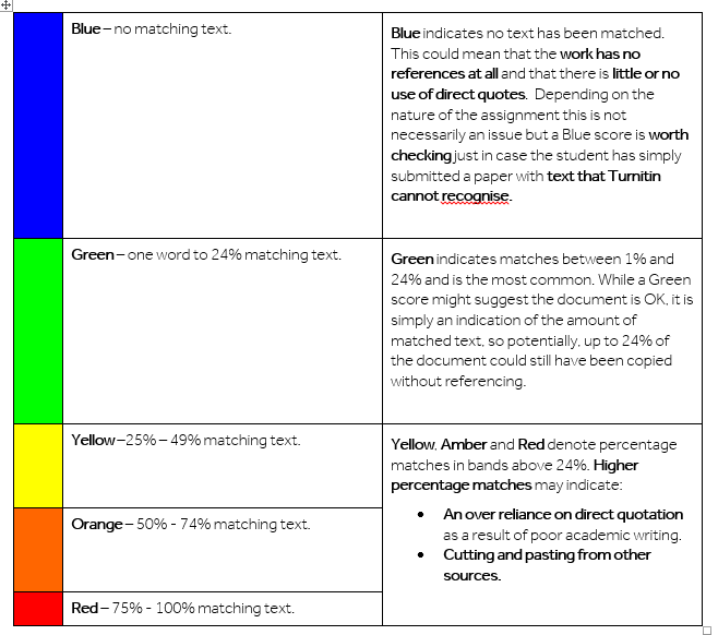 Home / Assessment & Feedback / Turnitin Assignment / Turnitin: A staff guide to interpreting the Similarity Report / table table Leave a Comment / By Peter Moll / August 17, 2018