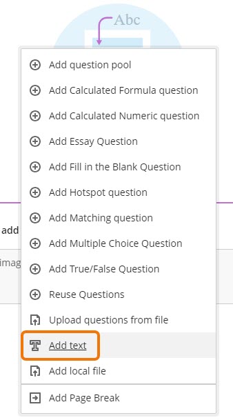 To add text or other content, when creating or editing the assessment, click on the + icon.