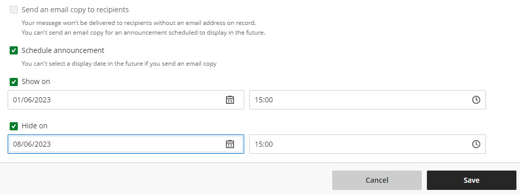 Home / Blackboard Learn Ultra / Announcements / Schedule announcement settings Schedule announcement settingsBy andyturner / May 25, 2023