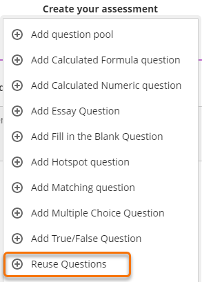 Select Reuse Questions from the plus menu.