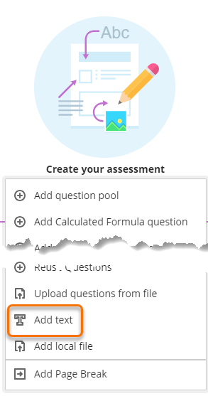 You are now ready to add questions, text, files or page breaks to your test.