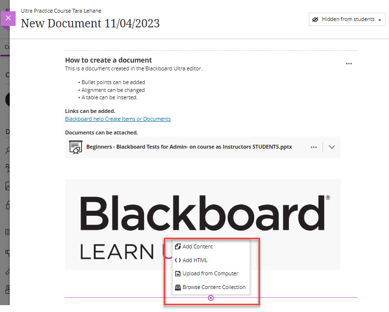 Home / Blackboard Learn Ultra / Create an Ultra Document / Create Document A3 Create Document A3By taralehane / April 11, 2023