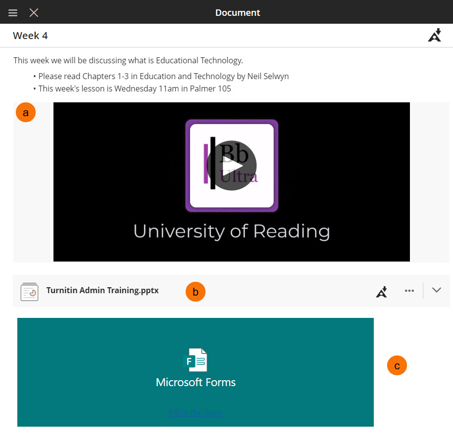 Home / Blackboard Learn Ultra / Create an Ultra Document / Documents 3aa Documents 3aaBy taralehane / December 19, 2023