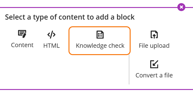 Knowledge checks allow you to add a formative multiple choice test to check students’ understanding. Students receive immediate feedback on their attempt. Instructors can view student attempt statistics.