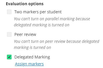 The Assign markers link will then appear. Click this link to open the Delegated Marking screen.
