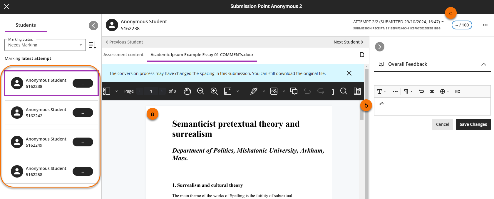 - Annotate the submission (a)