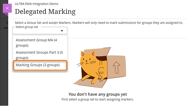 Delegated marking uses Groups Sets to assign the students to marking. It is important you create these sets in the Groups area before setting your assignment. See Using Groups in Learn Ultra for more information on how to do this. The Groups Sets can be manually or randomly assigned.