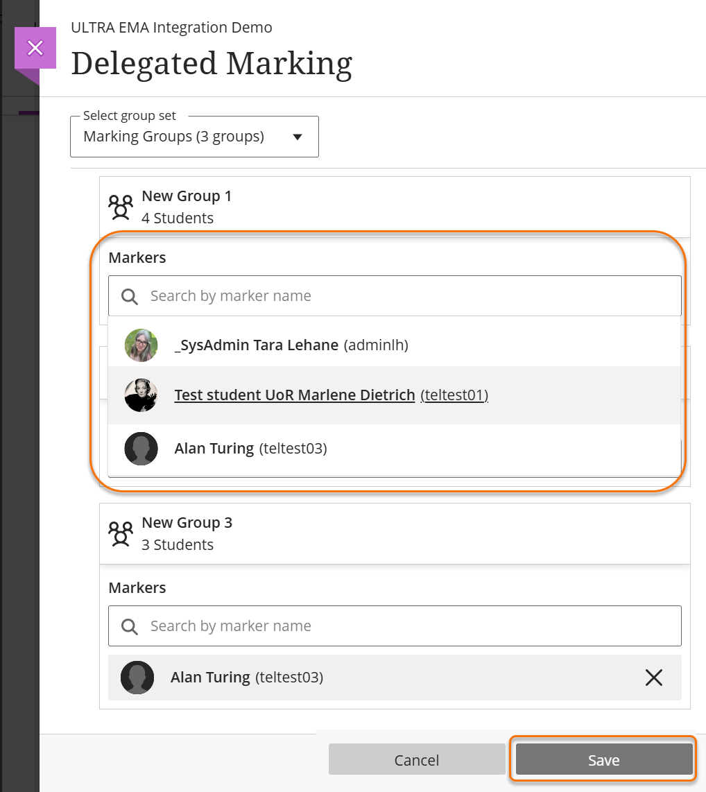 - Step 3: Assign markers: Select instructors for each group