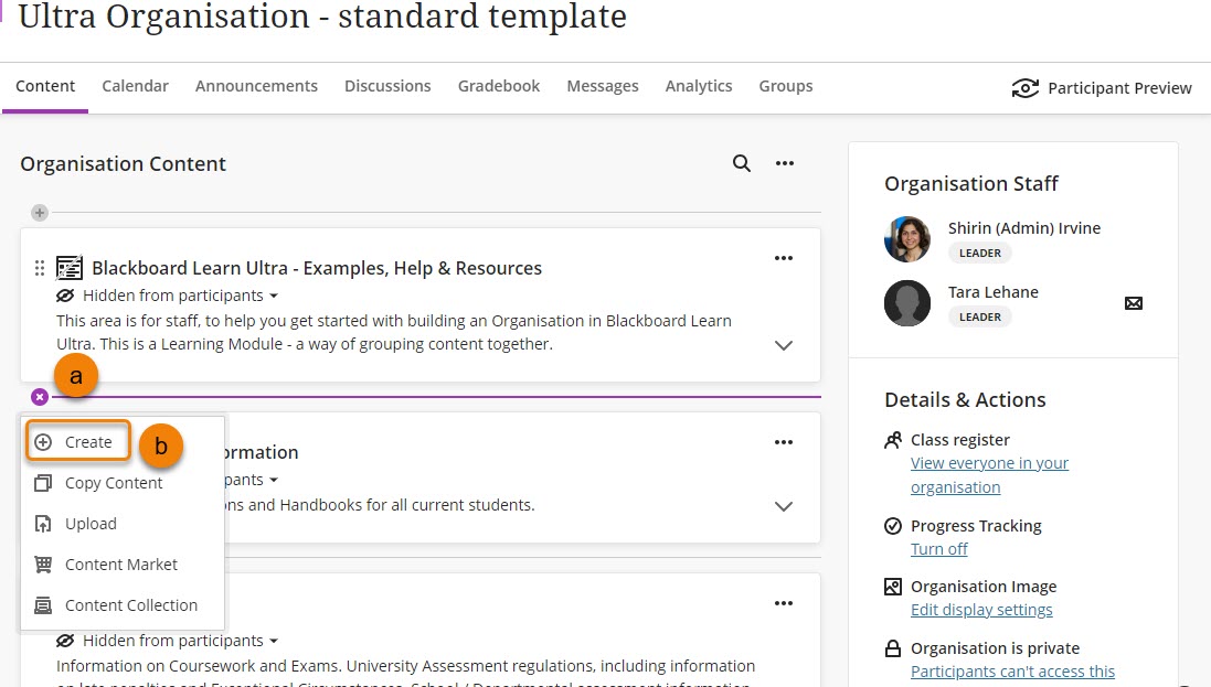 With the Blank Ultra Organisation, start by creating a Learning Module for each content area you will need to organise the material. Start with the most essential information students will need.