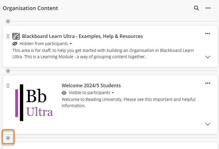 Blackboard Organisations moved to Blackboard Learn Ultra at the start of the 2023/4 academic year. If you had an older Organisation and had not created a Blackboard Learn Ultra Organisation by the 11th September 2023, students will no longer see your Organisation. Create an Ultra Organisation quickly using the steps below. Once you have the essential information up and available to students you can see our further guidance on Building Content in Blackboard Learn Ultra.