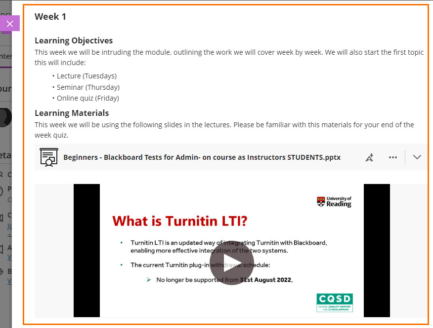 Home / Blackboard Learn Ultra / Presenting files and Videos to students in Ultra courses / Presenting Materials 5 Presenting Materials 5By taralehane / May 9, 2023