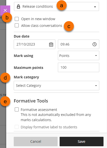 - (c) It is possible to allow Class conversation, not recommended for summative submission points.