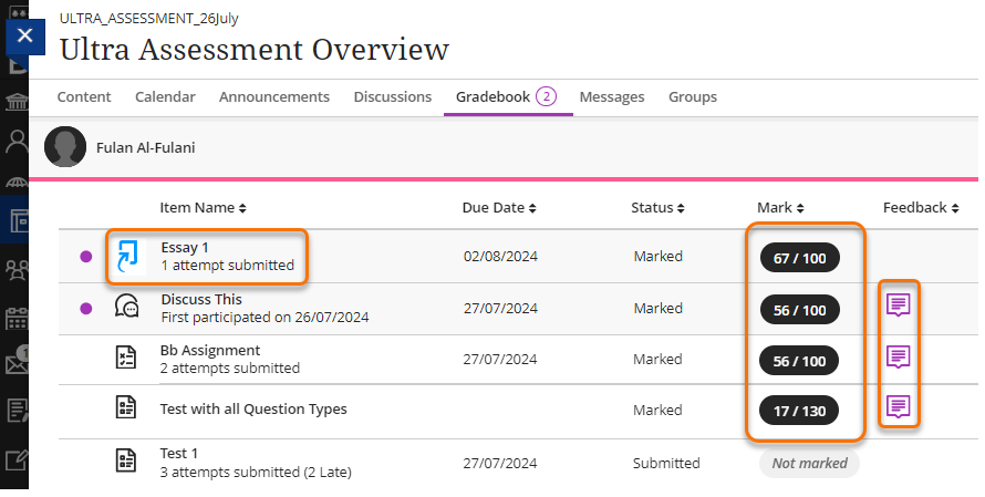 Home / Assessment & Feedback / Gradebook / How students view their Marks and Feedback / Staff-feedback-111 Staff-feedback-111By taralehane / August 8, 2024