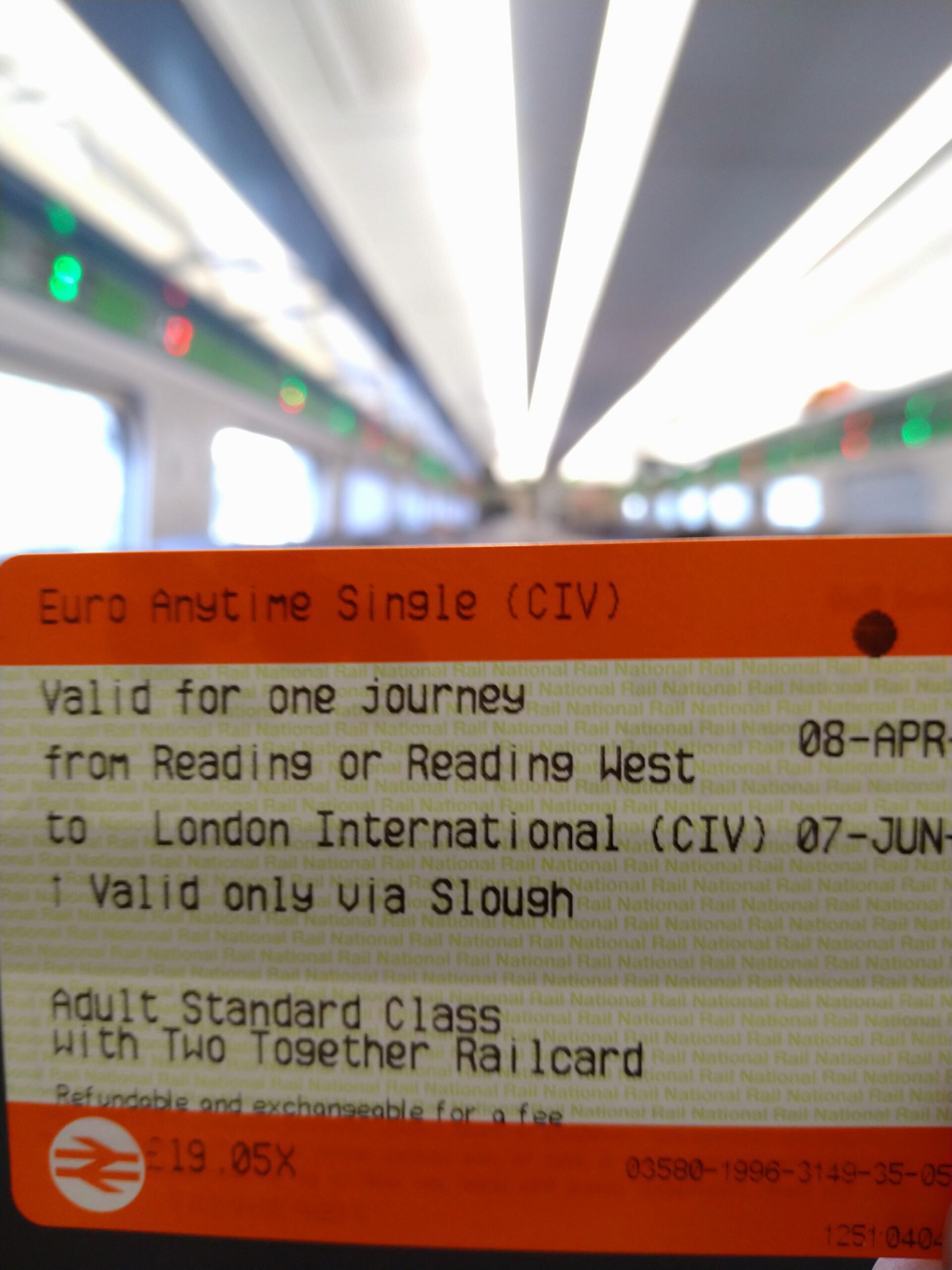 Travelling with my wife on Easter Saturday, we caught the 08:35 from Reading station to London St Pancras. We’re well-practised at European train travel, so knew that the (poorly advertised) “London International CIV” ticket is the best-priced ticket to connect with Eurostar. There’s loads more helpful hints for international train travel at the excellent https://www.seat61.com/