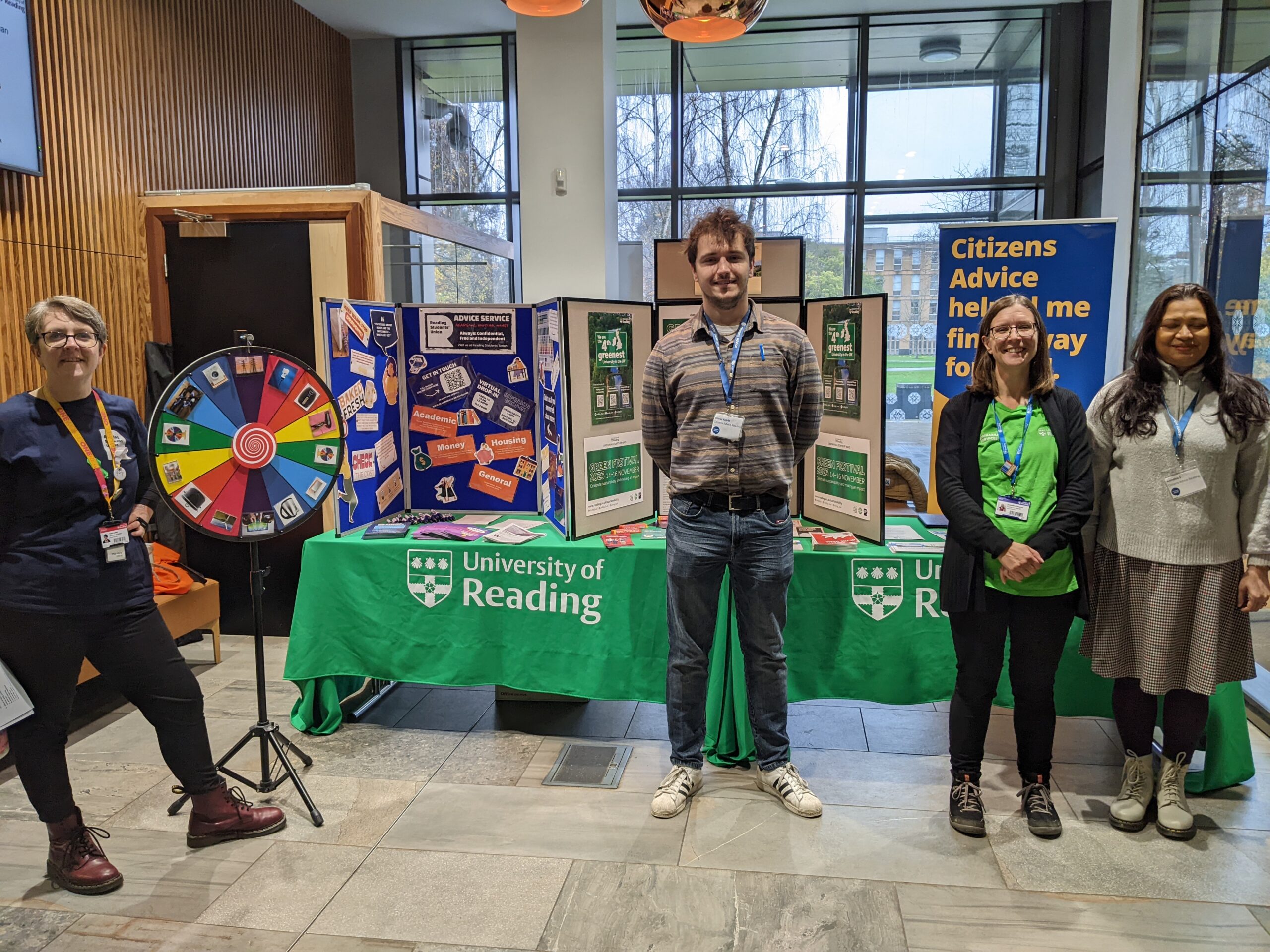 This year’s Green Festival was held from 14-16 November and it was packed schedule of events which attracted a range of people across our University Community. The Sustainability Team would like to extend their thanks to the following people and teams who we worked closely with to deliver this great programme of events: Reading Students Union, Careers, Dominque Davies, Dylan Parkes, Reading Buses, Leonie Fisher, Bethany Brown, Jamie Robertson, Hedgehog Society, RECC, Citizens Advice, Water Aid, Community team, Students Advice Service, cycling team, Chaplaincy, UPP, MERL, Student Comms, Digital Engagement Team, Reading Students Union communications team and the University Internal Comms Team to organise, co-ordinate and promote all the different events.