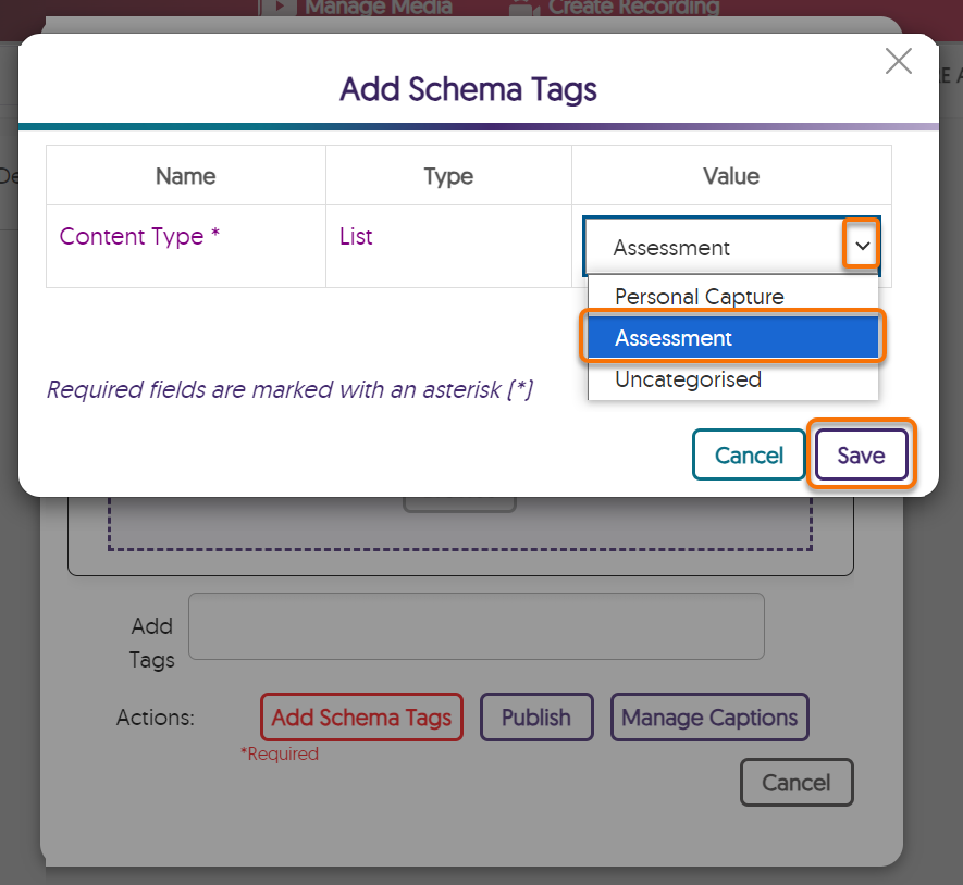 On the Upload screen you need to add the Schema Tag ‘Assessment’ in order to upload your work.