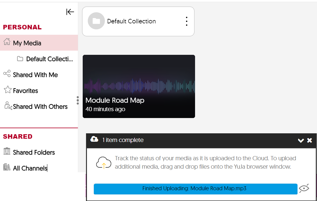 The file you upload to YuJa must be a video (e.g. MP4) or audio file (e.g. MP3).