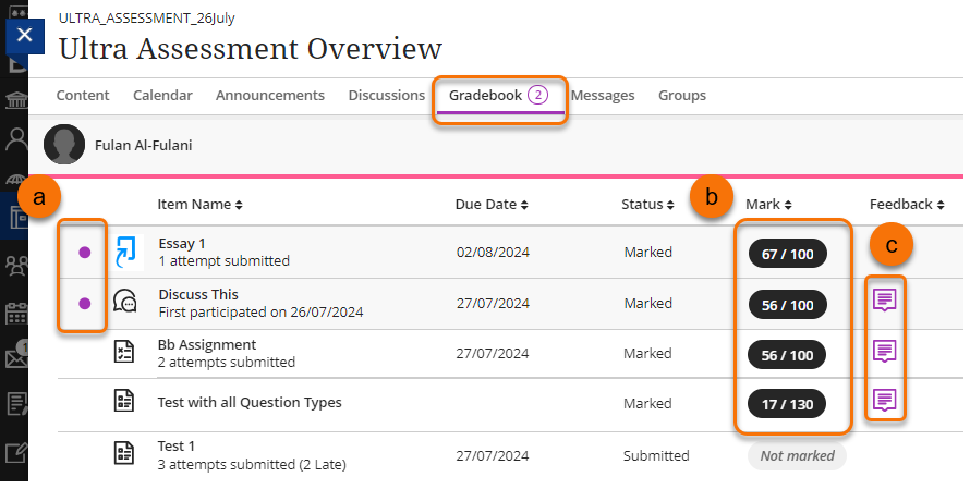 Home / Assessment / Using Gradebook to view your marks and feedback / Student-feedback-111 Student-feedback-111By taralehane / August 7, 2024