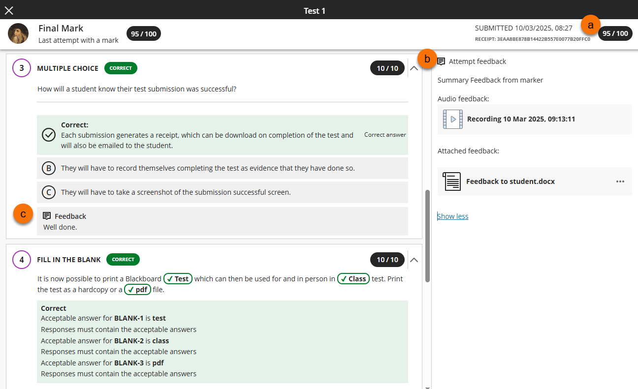Viewing Tests Marks and Feedback