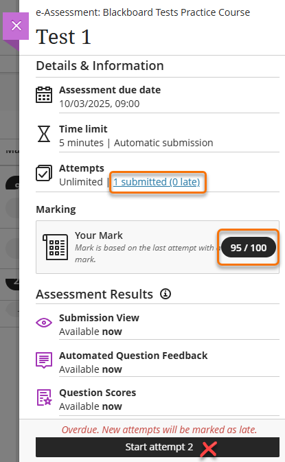 Viewing Tests Marks and Feedback