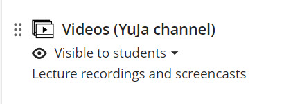 Students can access the course channel by clicking on a Videos (YuJa channel) link in the Blackboard module: